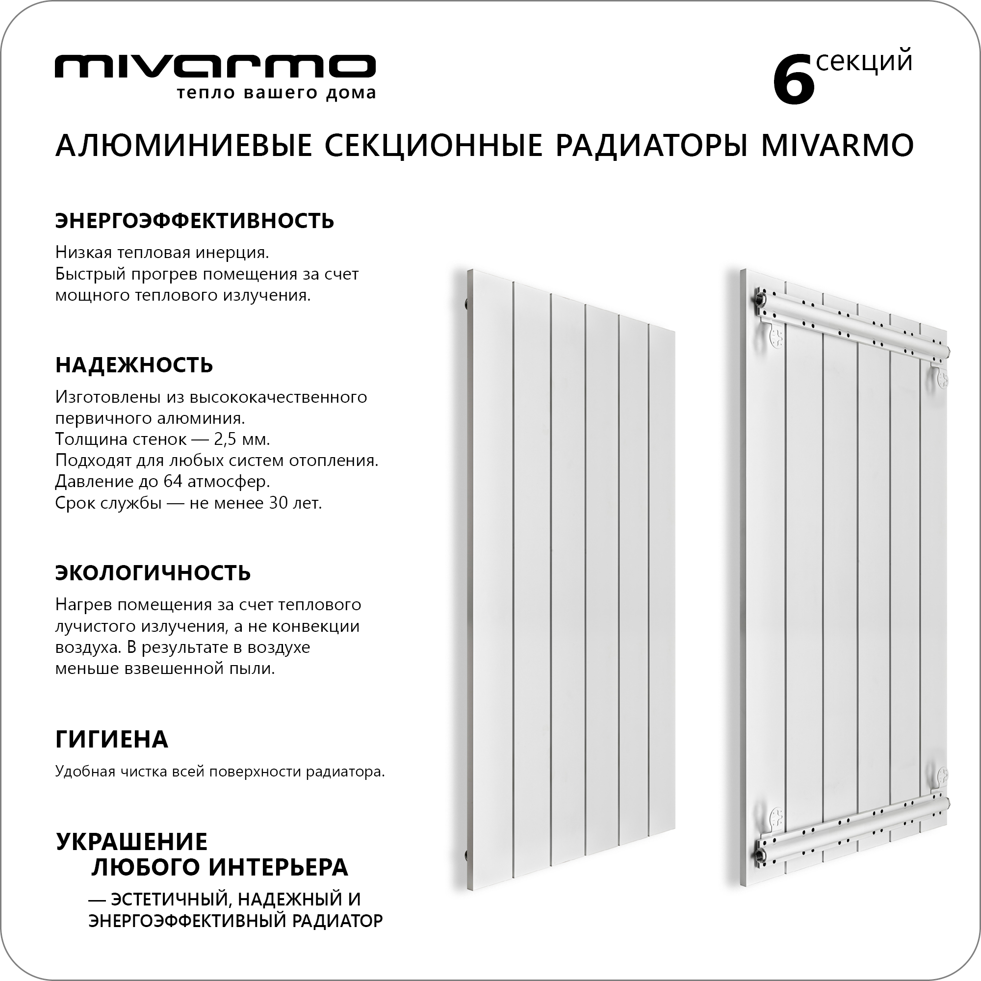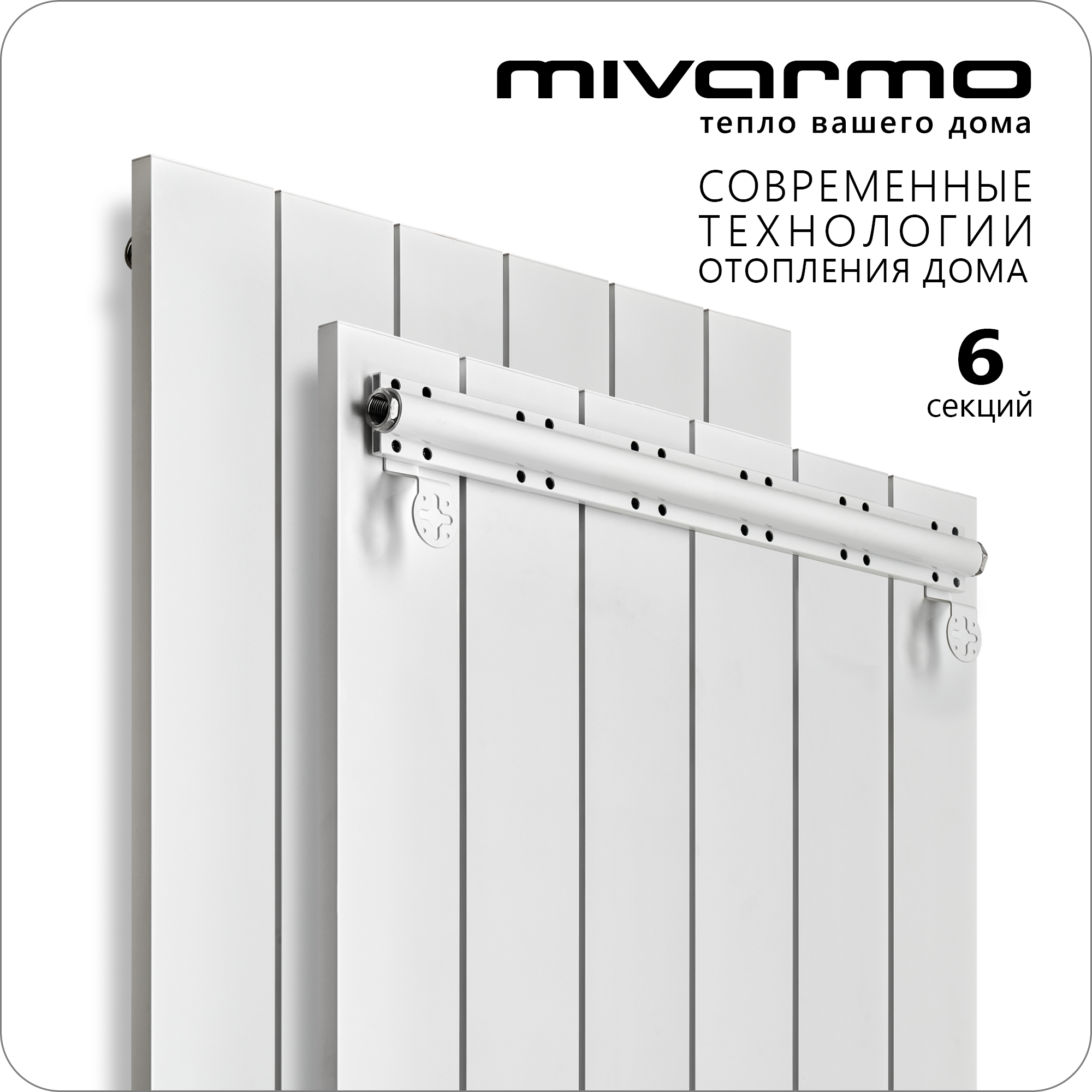 Секционный радиатор отопления Mivarmo 6 секций, горизонтальное/вертикальное подключение 175 см (белый матовый) информация: