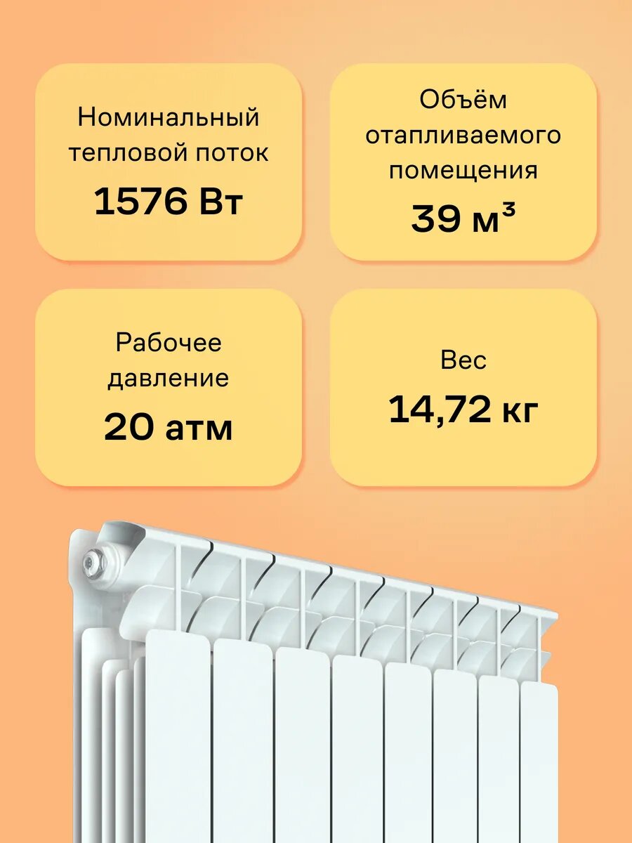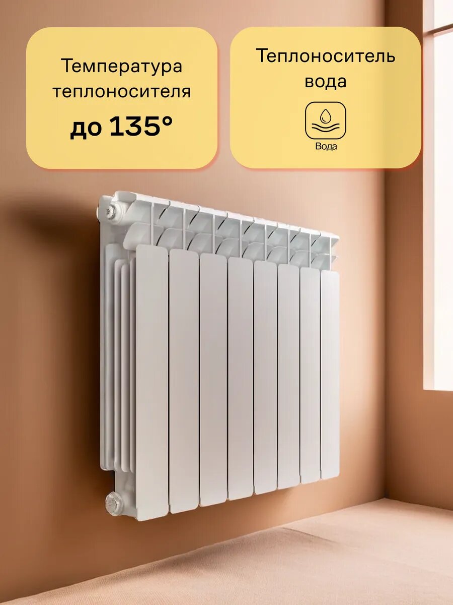Радиатор биметаллический RIFAR Base 500 8 секций, цвет белый информация: