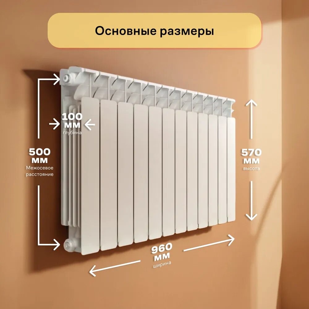 Радиатор биметаллический RIFAR Base 500 12 секций, цвет белый, подключение боковое информация: