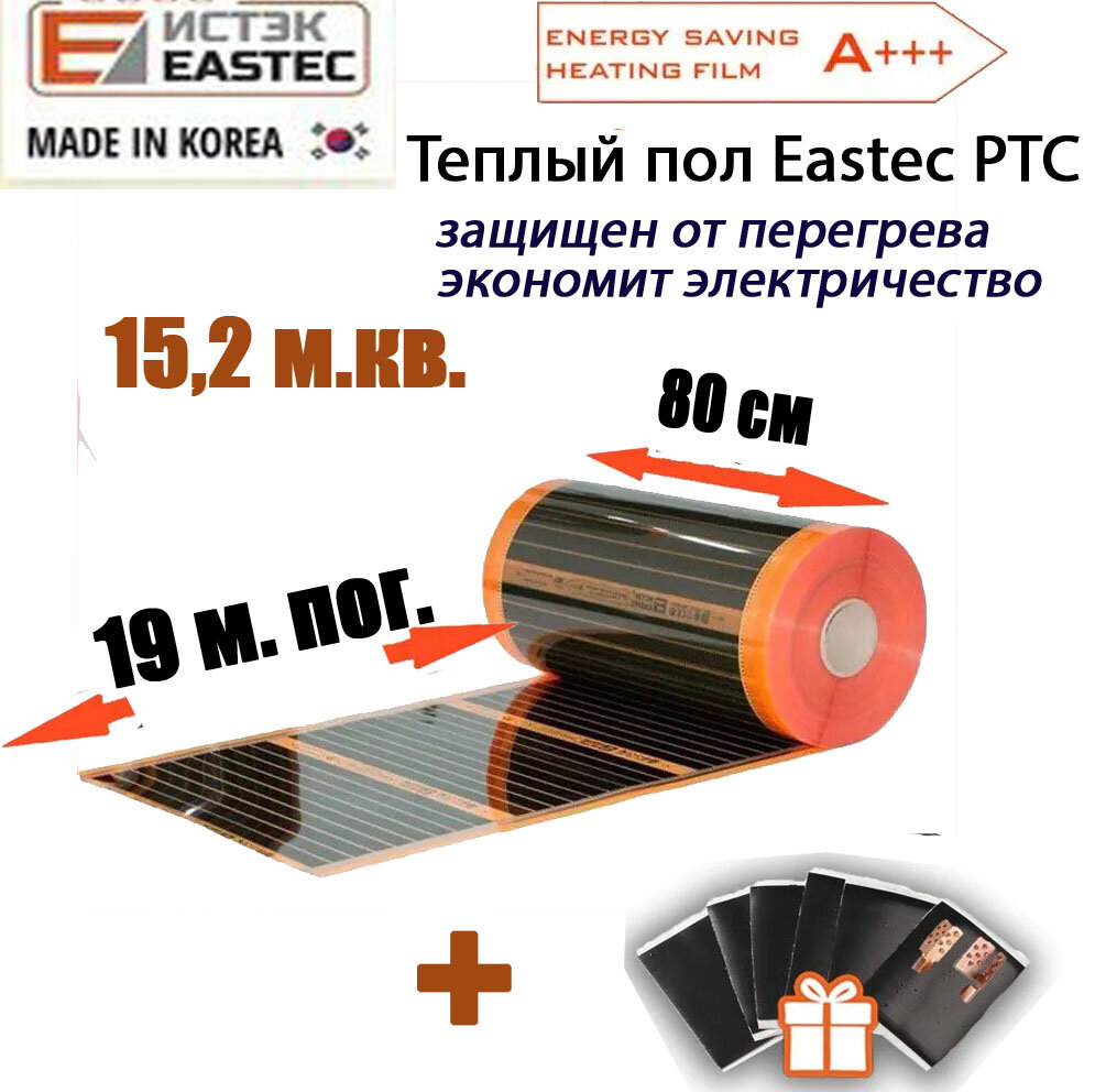 Саморегулирующийся инфракрасный пленочный теплый пол под ламинат, линолеум Eastec Energy Save PTC 80 длина 19 метров ширина 80 см информация: