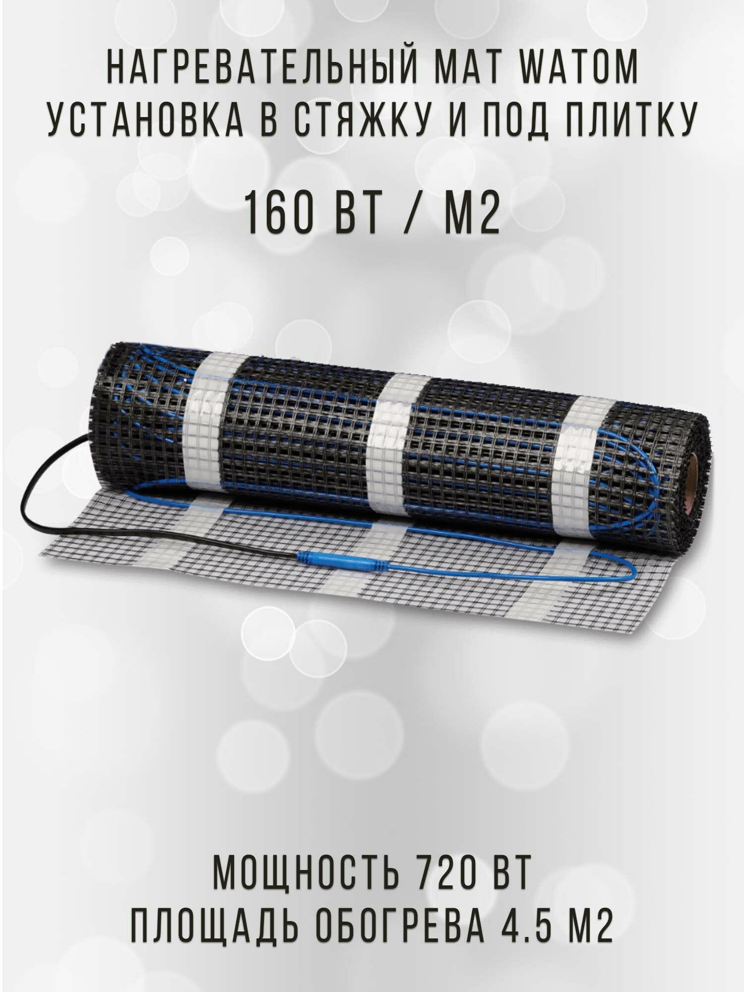 Теплый пол электрический под плитку WATOM WTM, 720 Вт, 4,5 кв. м. информация: