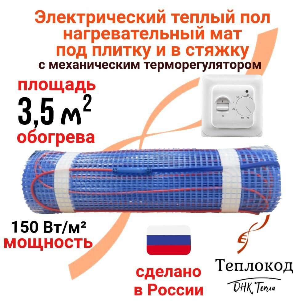 Теплый пол электрический 150 Вт/м2 под плитку и в стяжку (нагревательный мат) 3.5 м2 с механическим терморегулятором информация: