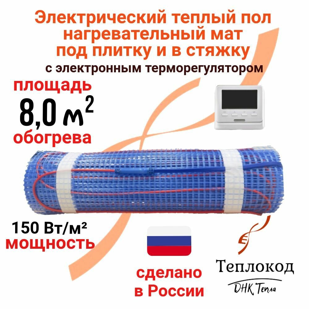 10 цен на Теплый пол электрический 150 Вт/м2 под плитку и в стяжку (нагревательный мат) 8 м2 с электронным терморегулятором