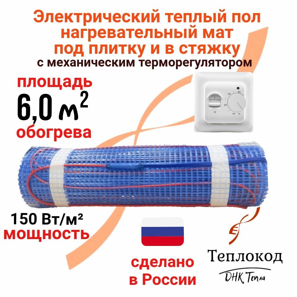 10 цен на Теплый пол электрический 150 Вт/м2 под плитку и в стяжку (нагревательный мат) 6 м2 с механическим терморегулятором