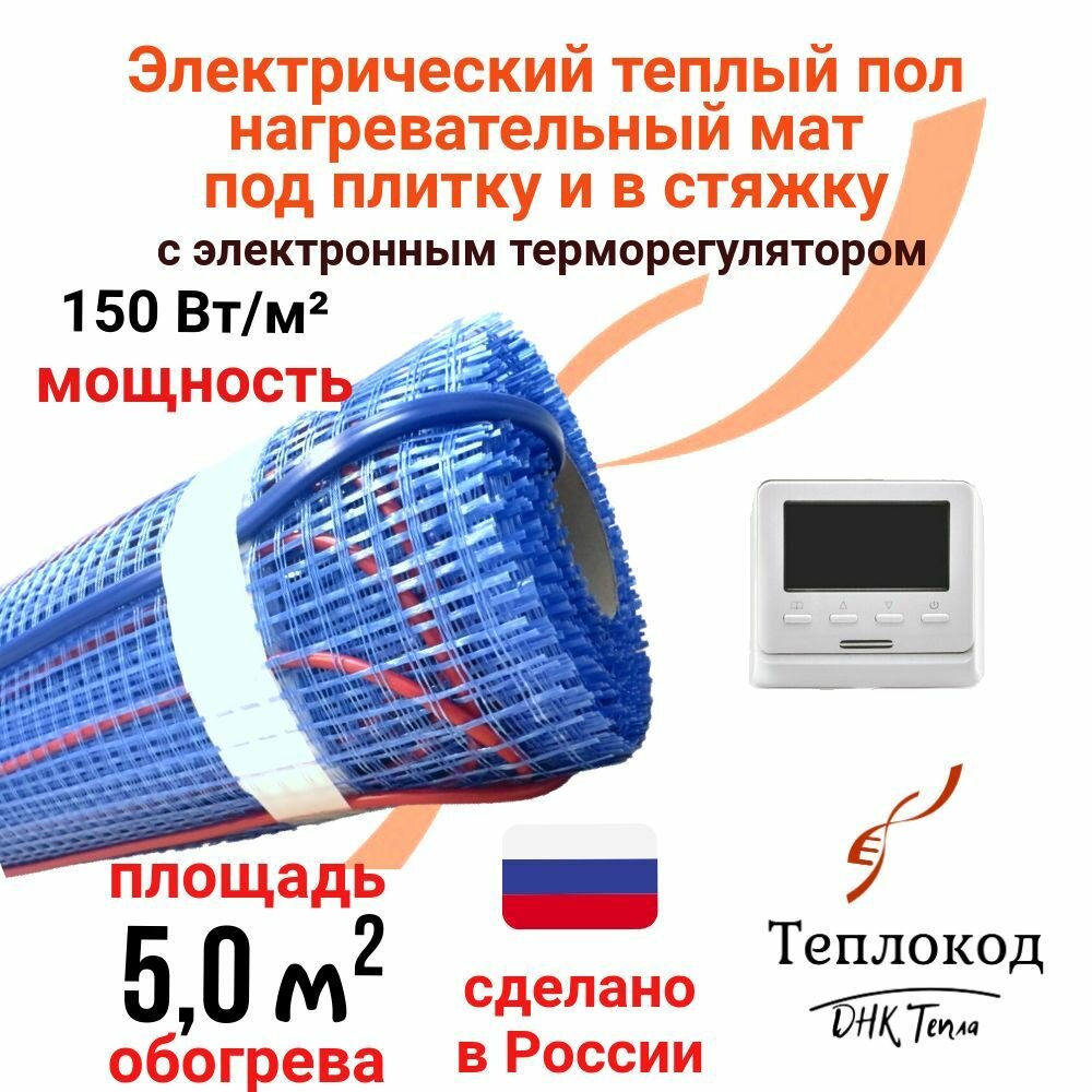 10 цен на Теплый пол электрический 150 Вт/м2 под плитку и в стяжку (нагревательный мат) 5 м2 с электронным терморегулятором