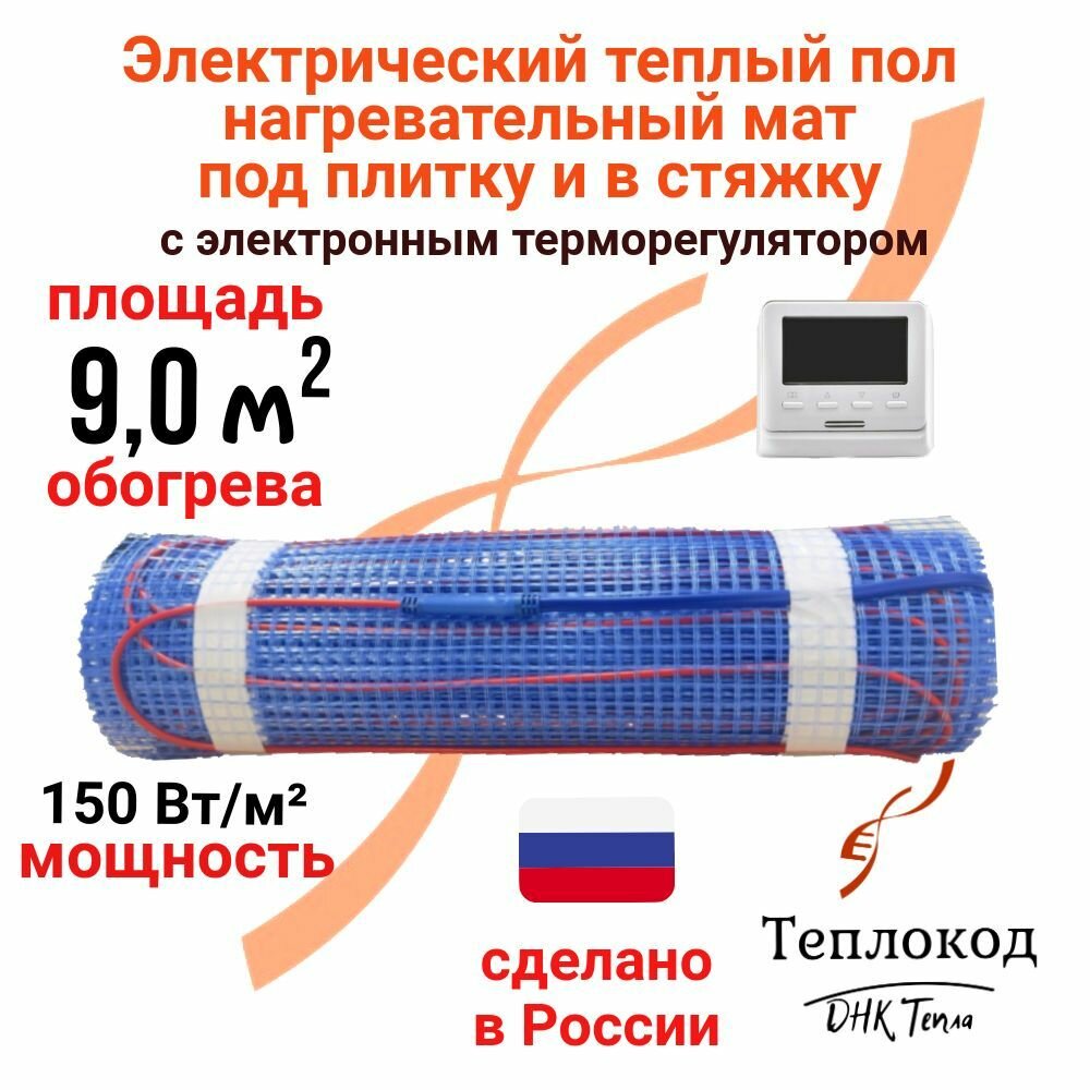 10 цен на Теплый пол электрический 150 Вт/м2 под плитку и в стяжку (нагревательный мат) 9 м2 с электронным терморегулятором