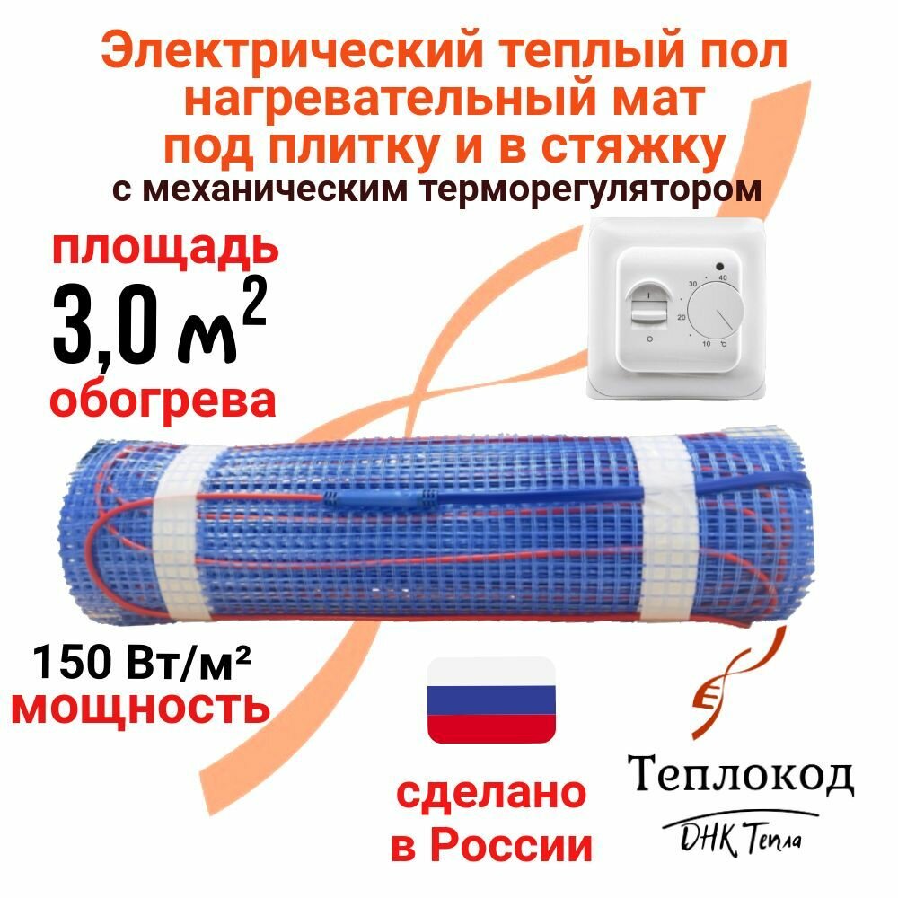 10 цен на Теплый пол электрический 150 Вт/м2 под плитку и в стяжку (нагревательный мат) 3 м2 с механическим терморегулятором