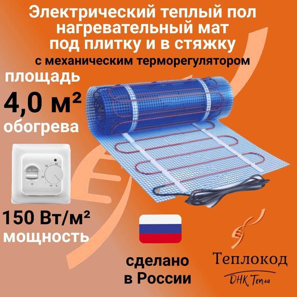 10 цен на Теплый пол электрический 150 Вт/м2 под плитку и в стяжку (нагревательный мат) 4 м2 с механическим терморегулятором