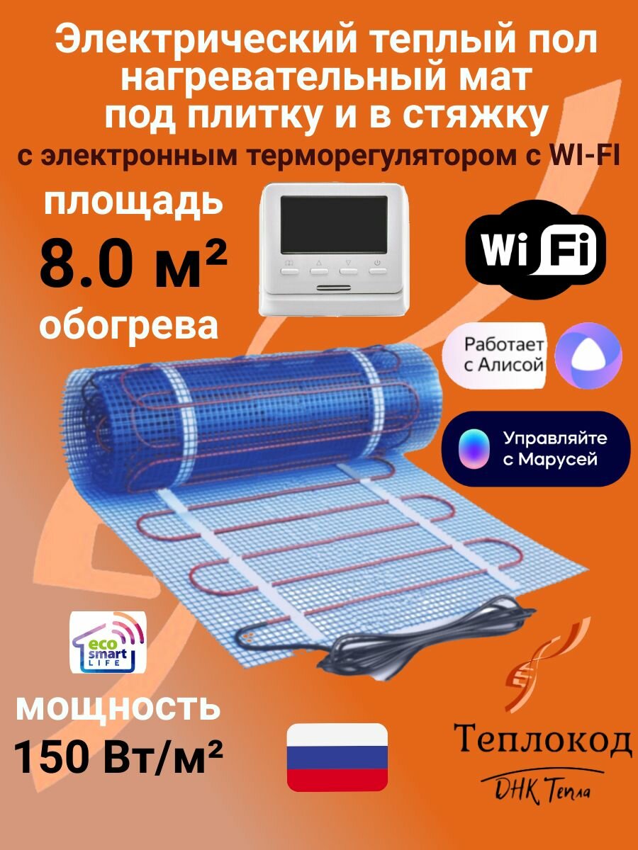 10 цен на Теплый пол электрический 150 Вт/м2 под плитку и в стяжку (нагревательный мат) 8 м2 с электронным WI-FI терморегулятором