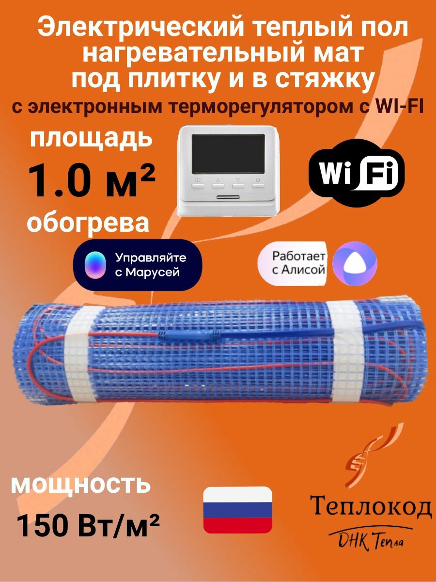 10 цен на Теплый пол электрический 150 Вт/м2 под плитку и в стяжку (нагревательный мат) 1 м2 с электронным WI-FI терморегулятором