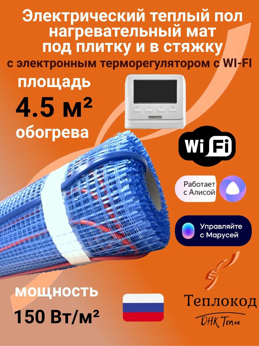10 цен на Теплый пол электрический 150 Вт/м2 под плитку и в стяжку (нагревательный мат) 4.5 м2 с электронным WI-FI терморегулятором