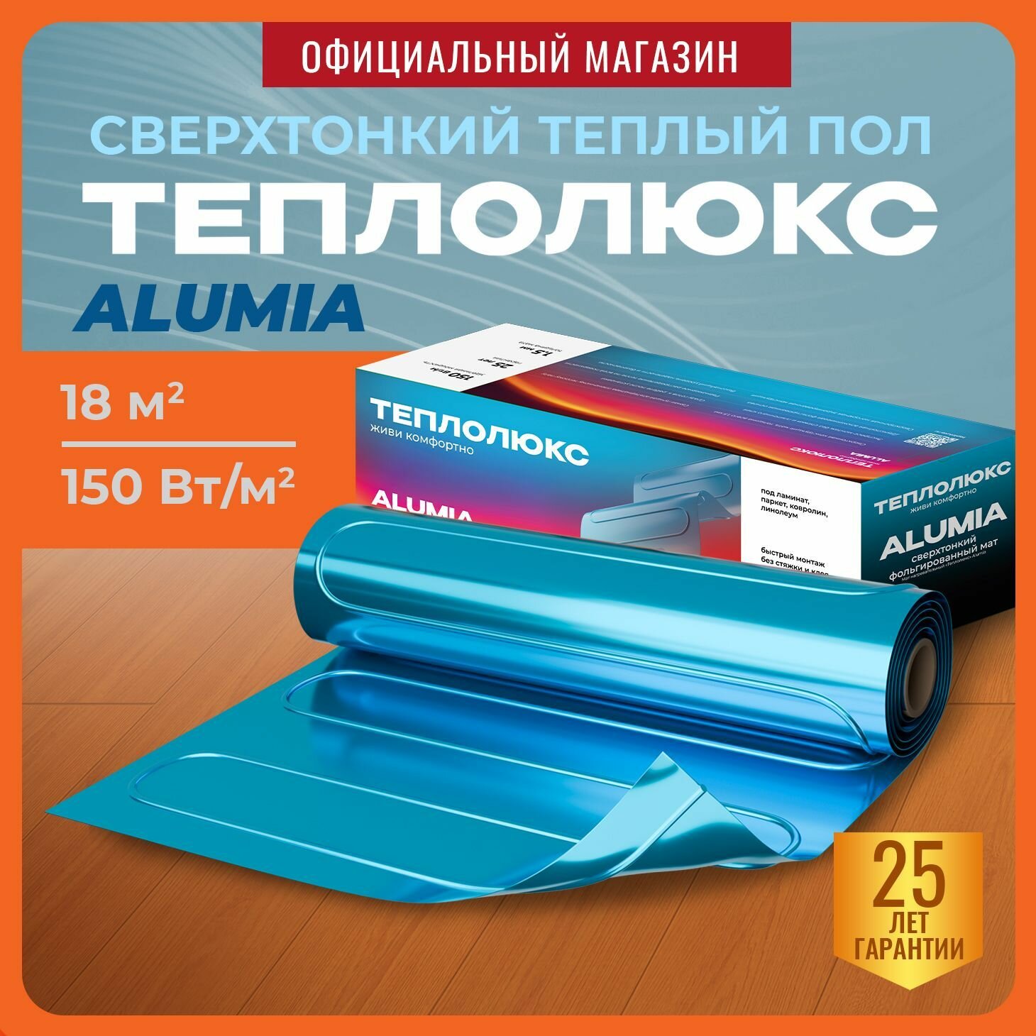 Теплый пол электрический под ламинат, паркет, линолеум Теплолюкс Alumia 2700 Вт/18,0 кв. м информация: