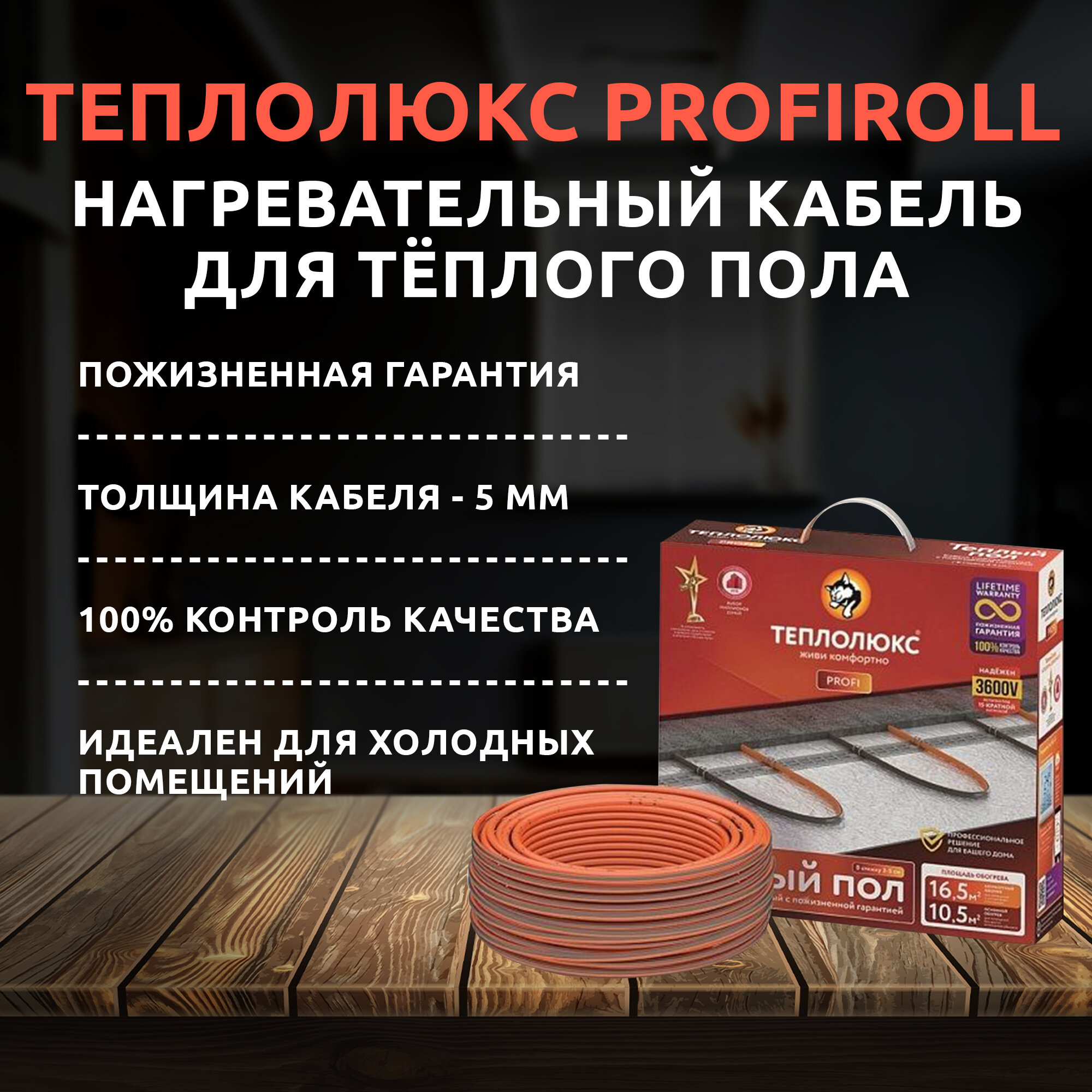 Теплый пол под плитку ТЕПЛОЛЮКС ProfiRoll 31,5 м/540 Вт Нагревательный кабель в стяжку информация: