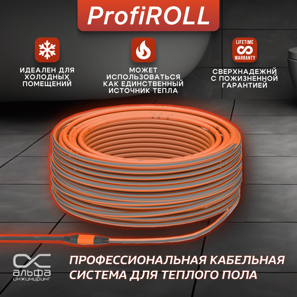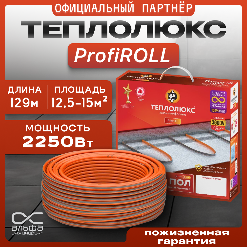 ТЕПЛОЛЮКС ProfiRoll 129,0 м/2250 Вт. Греющий кабель для теплого пола под плитку. информация: