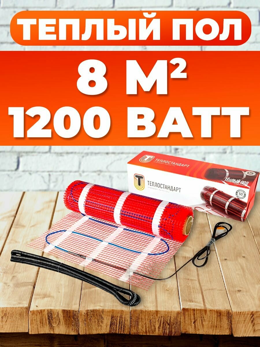 Электрический теплый пол Теплостандарт 8 м2, 1200 Вт, нагревательный мат в стяжку под плитку, линолеум, ламинат и ковролин информация: