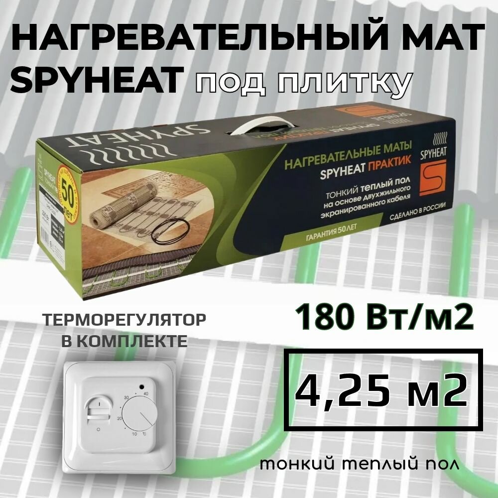 10 цен на 4,25 м2 Теплый пол (электрический) под плитку нагревательный мат SpyHeat SHMD-12-765 Вт с механическим терморегулятором