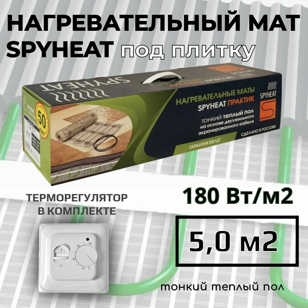 5,0 м2 Теплый пол (электрический) под плитку нагревательный мат SpyHeat SHMD-12-900 Вт с механическим терморегулятором информация: