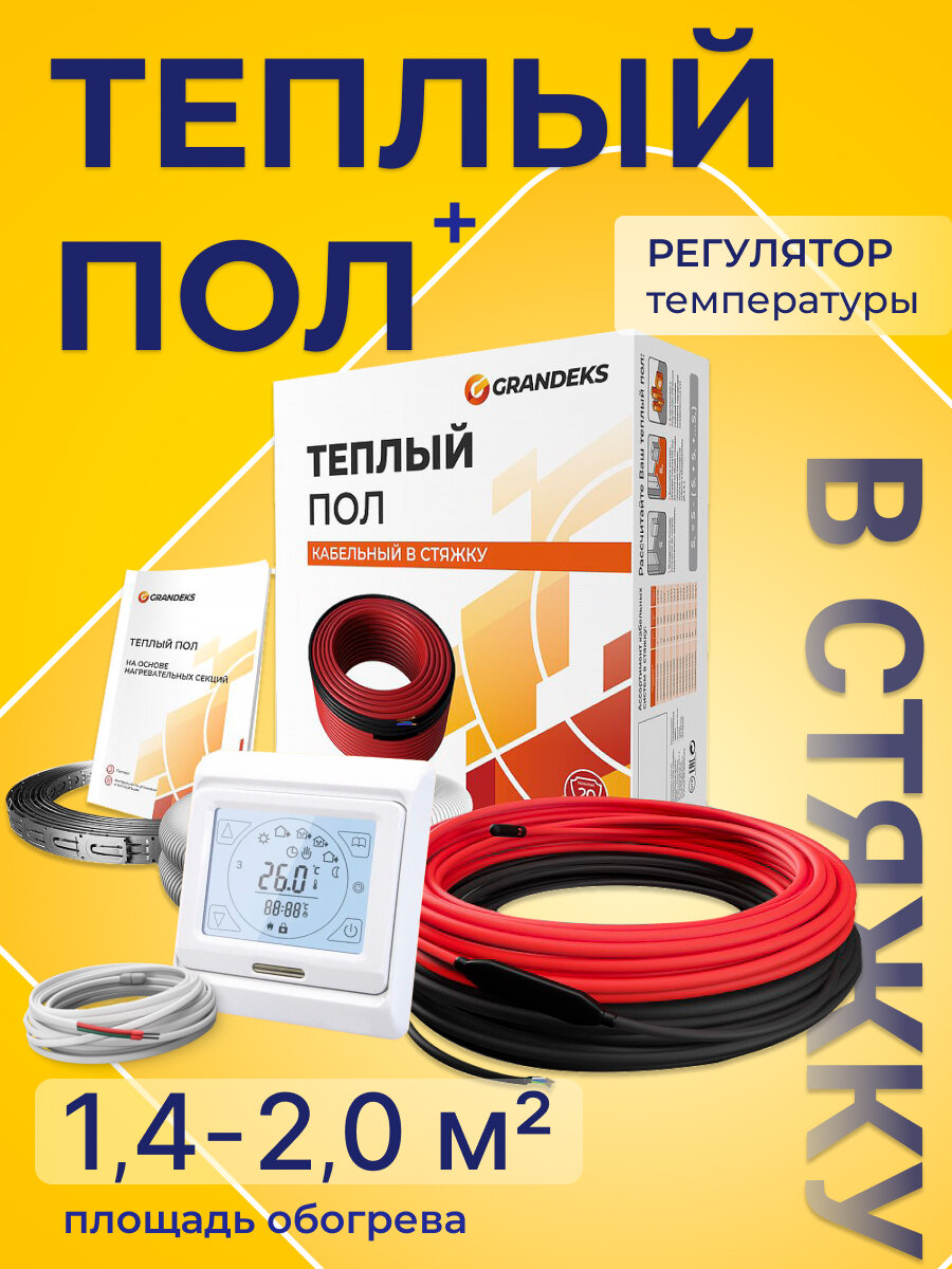 Теплый пол в стяжку, площадь 1.4-2.0 м2, мощность системы 260 Вт, с программируемым терморегулятором 5 368 ₽