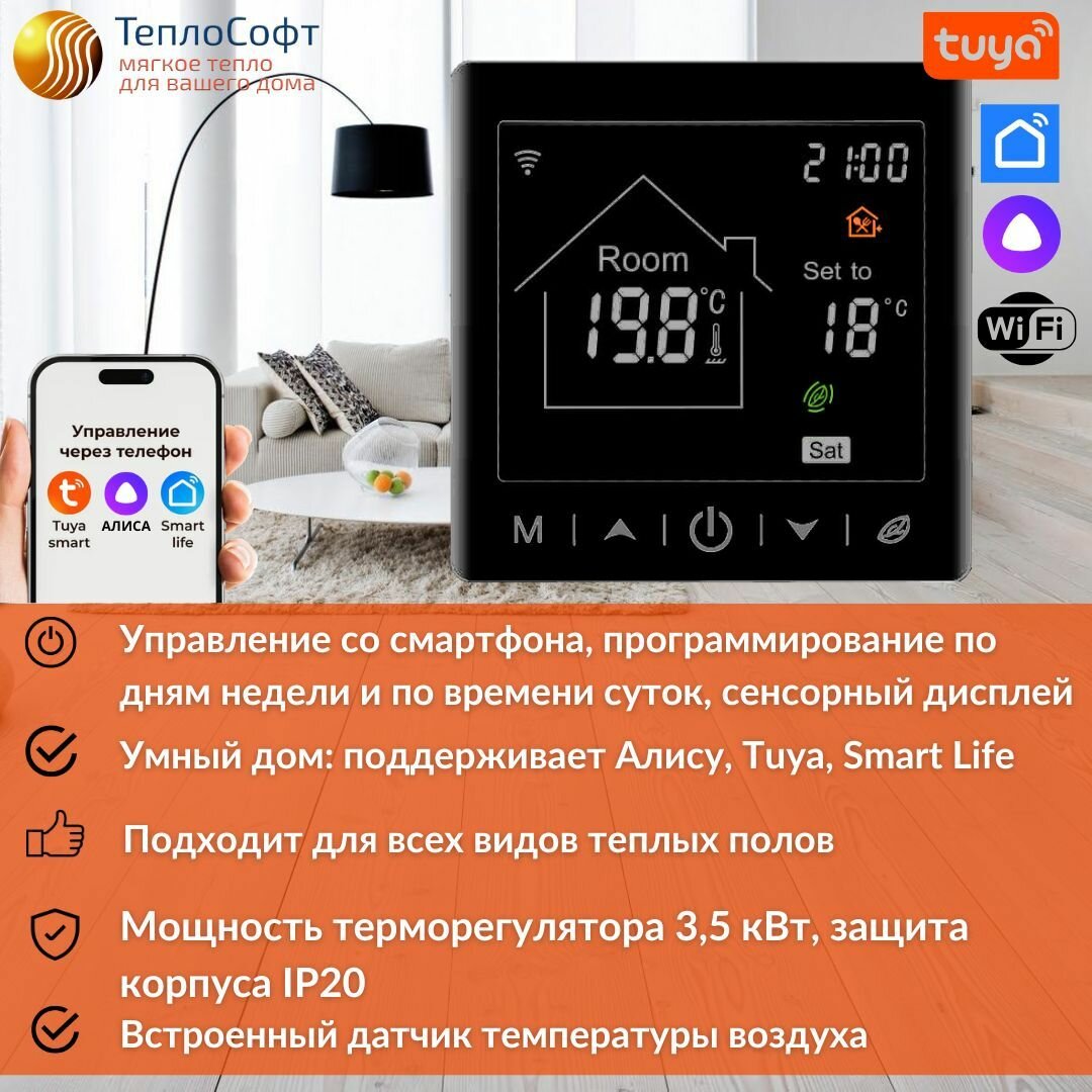 10 цен на Теплый пол электрический под плитку 3,5 м2 с черным умным wi-fi сенсорным терморегулятором. Нагревательный мат 3,5 м. кв.