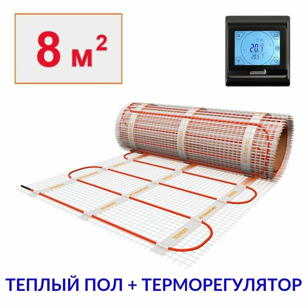 10 цен на Теплый пол электрический под плитку 8 м2 с черным сенсорным терморегулятором. Нагревательный мат 8м. кв.