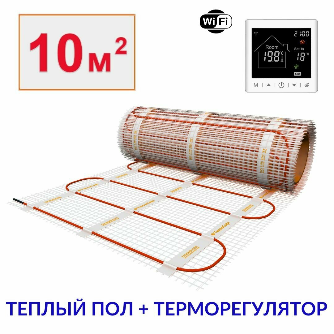 10 цен на Теплый пол электрический под плитку 10 м2 с умным wi-fi терморегулятором. Нагревательный мат 10м. кв.