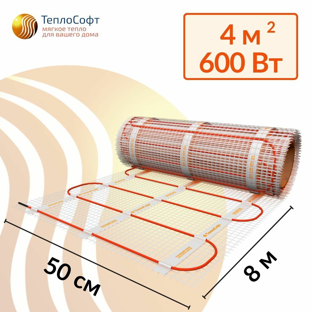 Теплый пол электрический под плитку 4 м2 с терморегулятором. Нагревательный мат 4м. кв. информация: