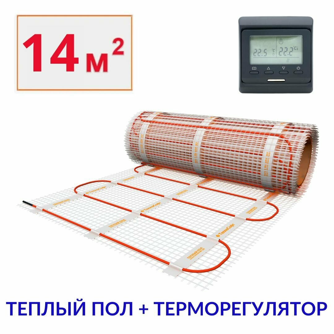 Теплый пол под плитку 14 м2 с черным терморегулятором. Нагревательный мат 14м. кв 15 570 ₽