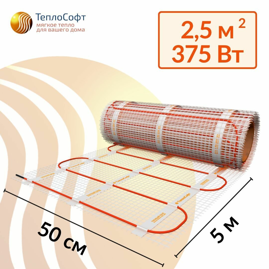 Теплый пол электрический под плитку 2,5 м2 с черным умным wi-fi сенсорным терморегулятором. Нагревательный мат 2,5м. кв. 6 545 ₽