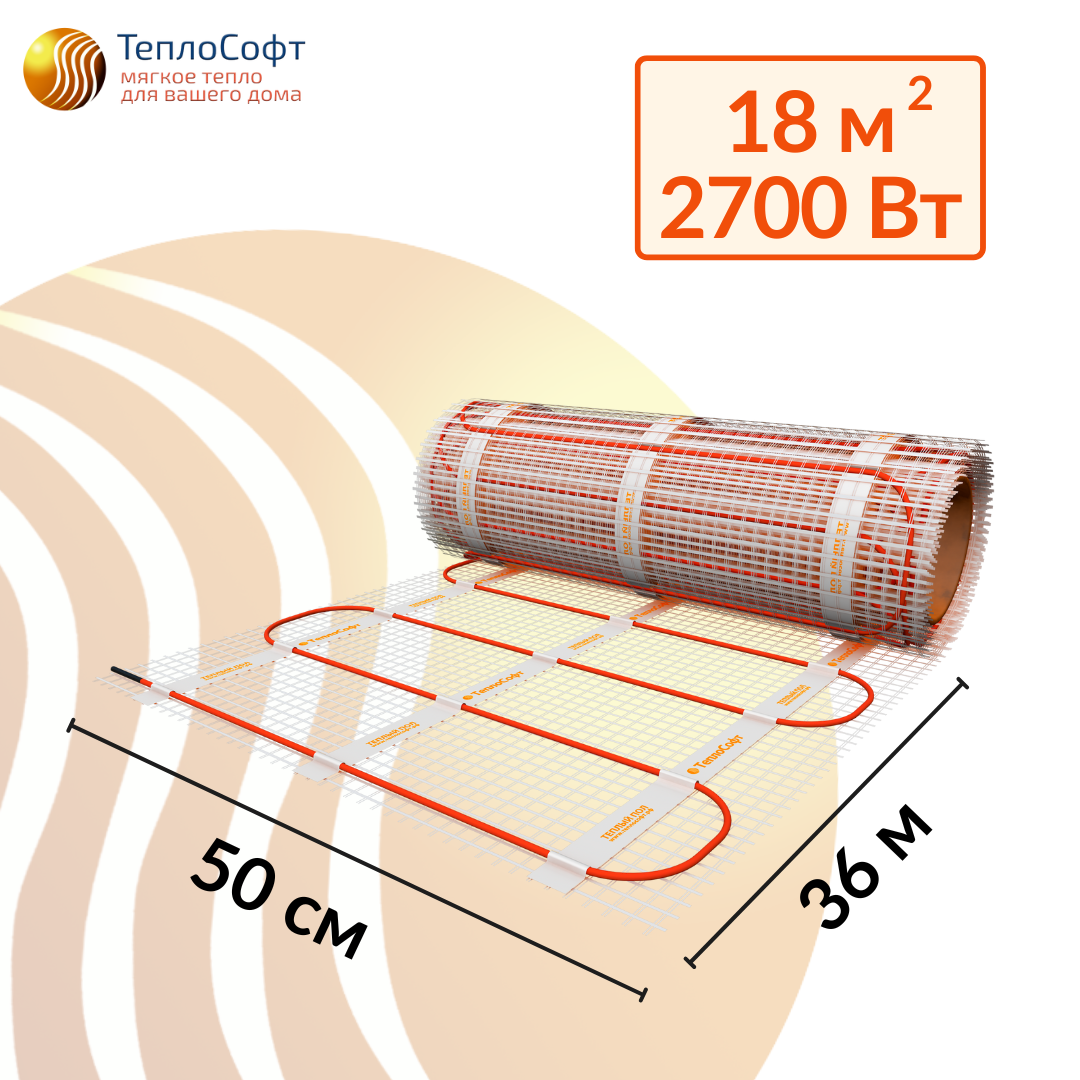 10 цен на Теплый пол под плитку 18 м2 с электронным терморегулятором. Нагревательный мат 18м. кв