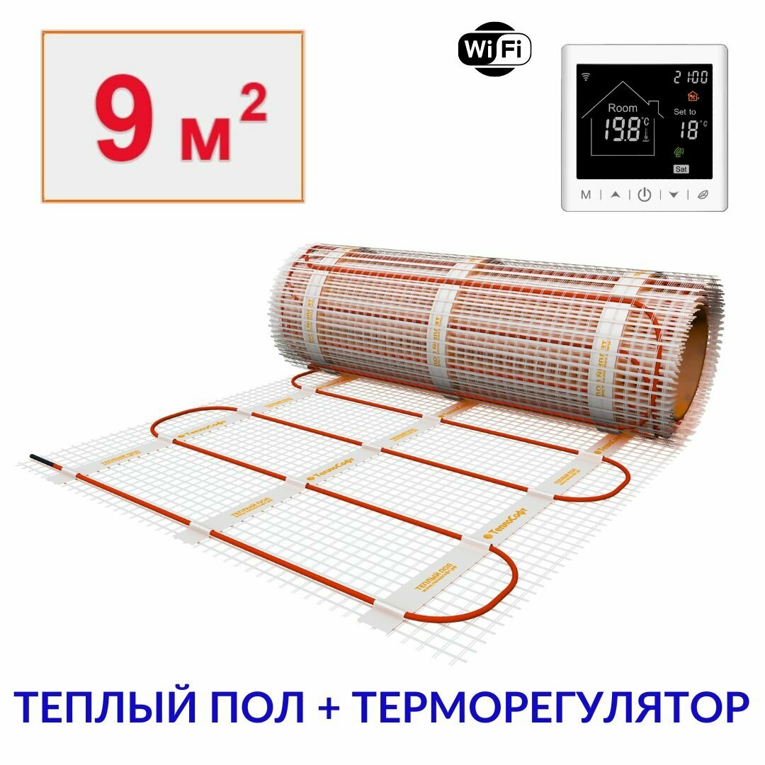 Теплый пол электрический под плитку 9 м2 с умным wi-fi терморегулятором. Нагревательный мат 9м. кв. информация: