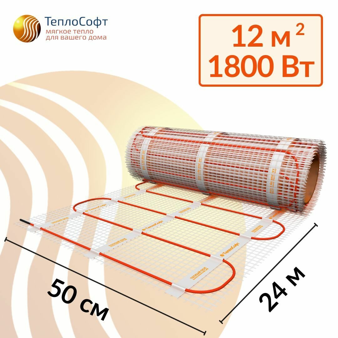 Теплый пол электрический под плитку 12 м2 с умным wi-fi терморегулятором. Нагревательный мат 12м. кв. 15 045 ₽
