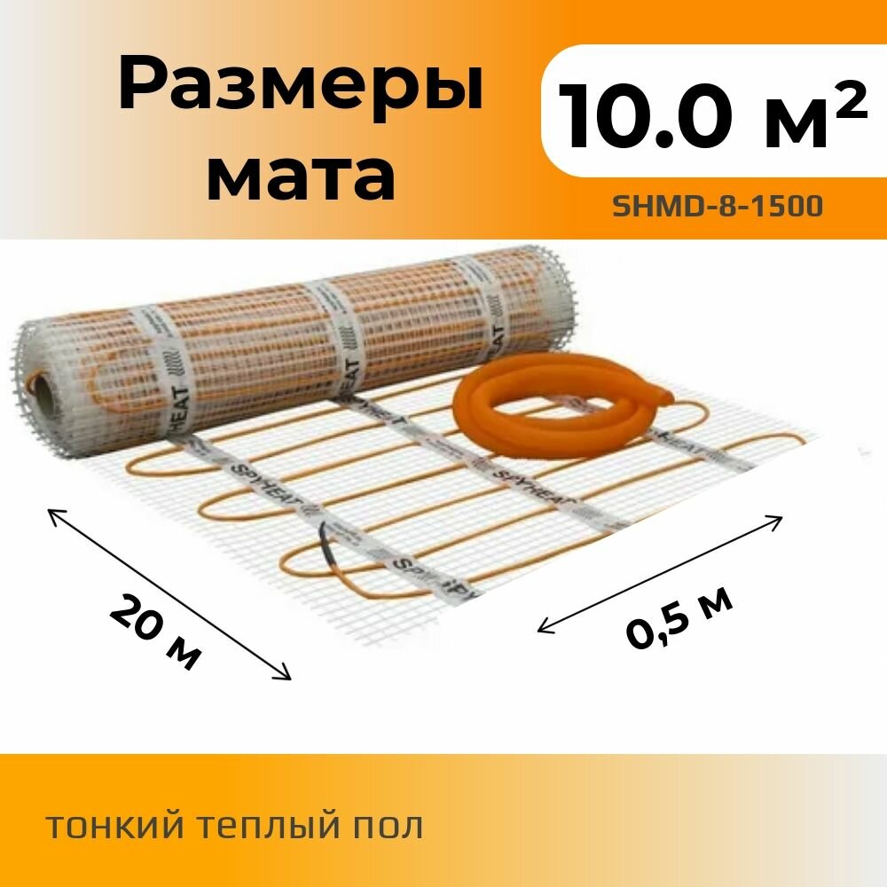 10,0 м2 Теплый пол без стяжки под плитку нагревательный мат SpyHeat SHMD-8-1500 Вт с механическим терморегулятором информация: