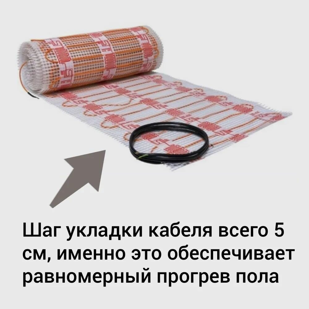 Теплый пол электрический под плитку Ридан TF-150 0,5 м2 нагревательный мат тонкий на самоклеящейся сетке