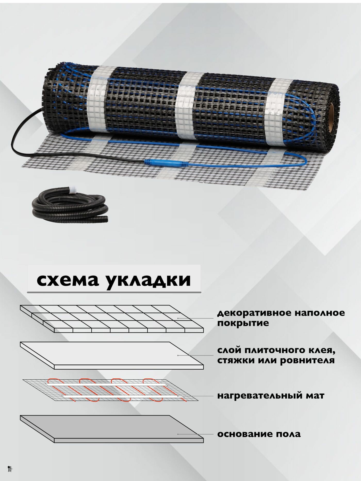 Теплый пол электрический под плитку Ридан TF-150 0,5 м2 нагревательный мат тонкий на самоклеящейся сетке