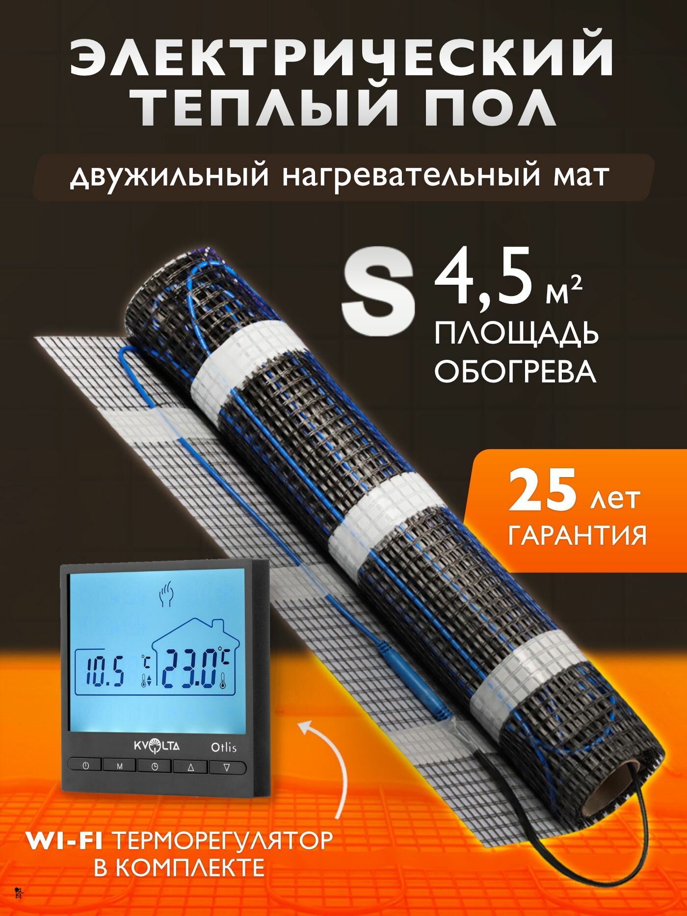 Отзывы на Комплект тёплого пола под плитку 4,5 кв. м. с Wi Fi терморегулятором. Нагревательный мат 720 Вт