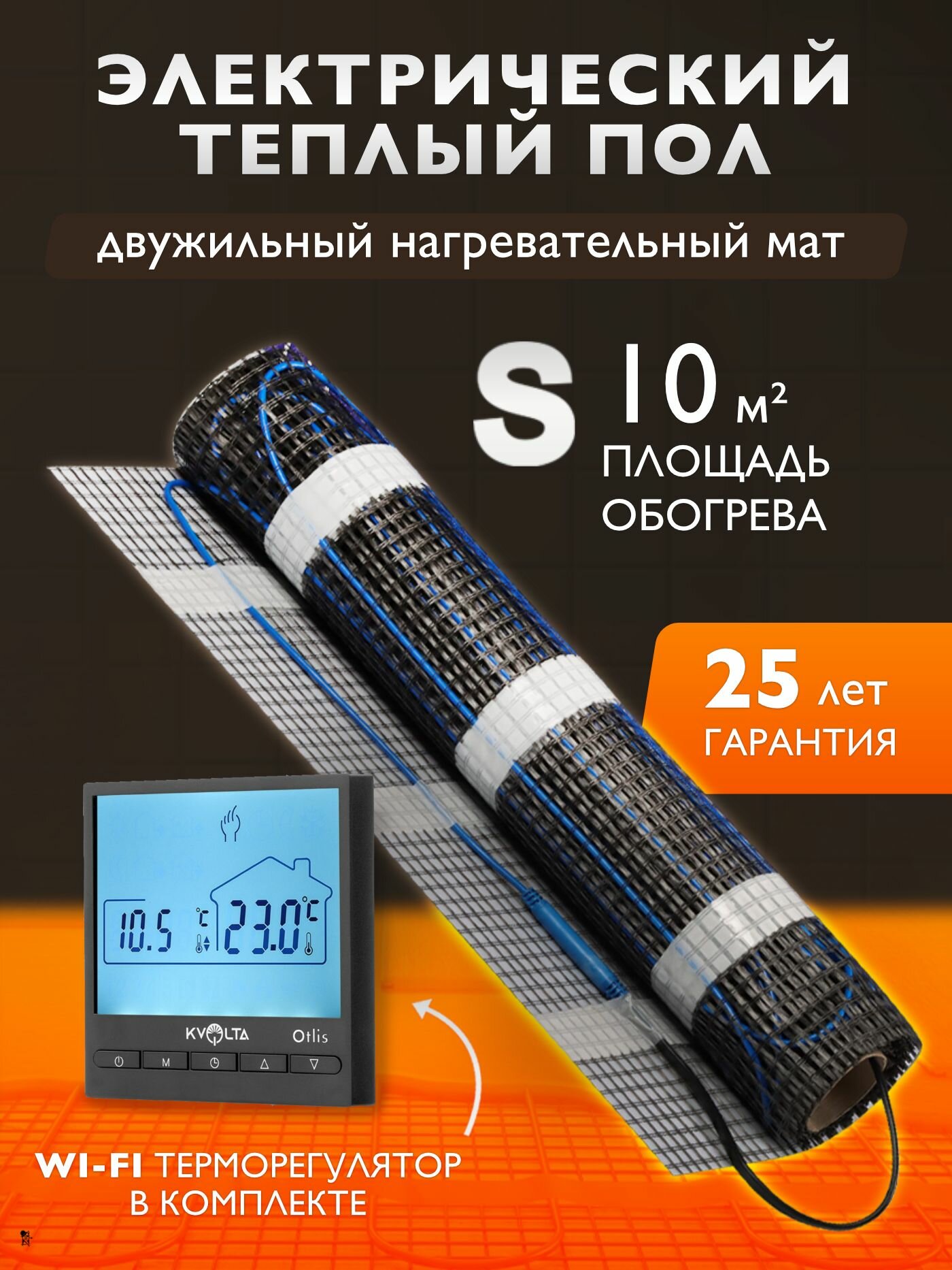 10 цен на Комплект тёплого пола под плитку 10 кв. м. с Wi Fi терморегулятором. Нагревательный мат 1600 Вт