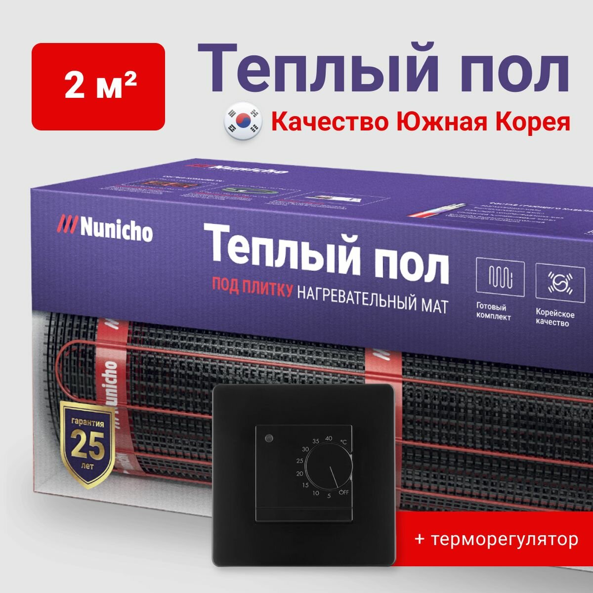 Теплый пол под плитку NUNICHO 2 м2, 150 Вт/м2 с механическим терморегулятором в рамку черным электрический нагревательный мат 5 414 ₽