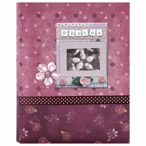 Фотоальбом семейный/свадебный/детский "Друзья" на 200 фотографий 10x15см, твердая обложка, книжний переплет, бумажные листы с карманами, сиреневый, Brauberg