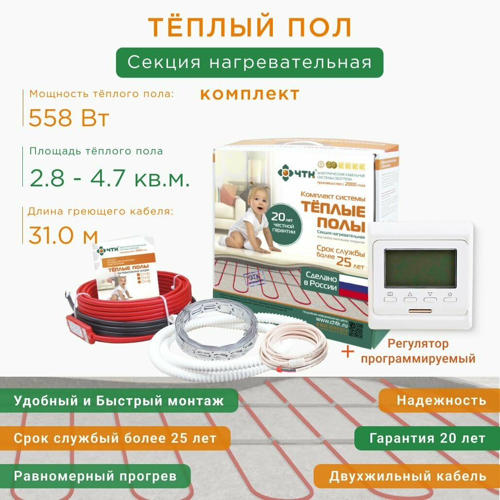 Теплый пол в стяжку от 2,8 до 4,7 м2, мощность 558 Вт, регулятор программируемый в комплекте, КСН-18 информация:
