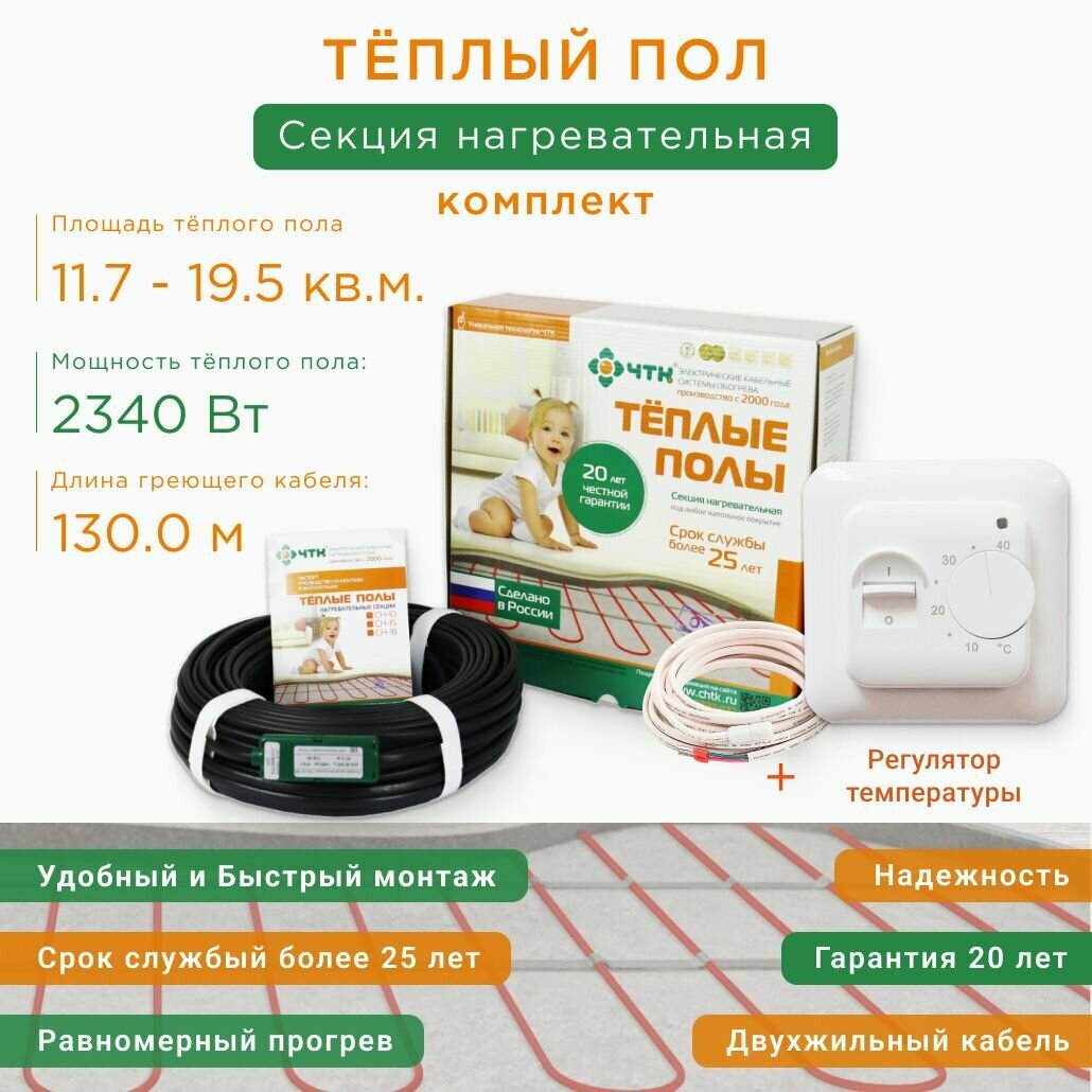 10 цен на Теплый пол в стяжку от 11,7 до 19,5 м2, мощность системы 2340 Вт, регулятор RTC70 в комплекте, КСН18