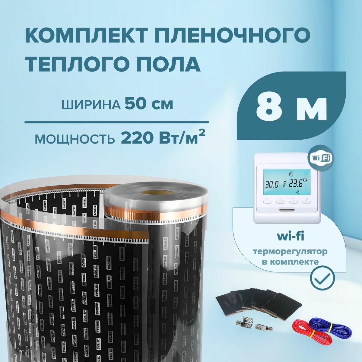 Пленочный теплый пол 8 м/п ширина 50см EASTEC комплект с Wi-Fi терморегулятором информация: