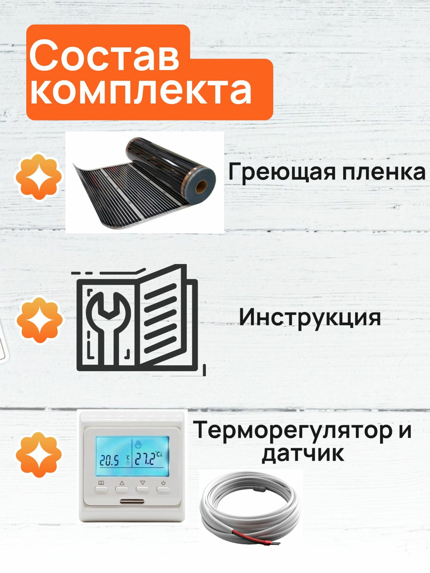Теплый пол инфракрасный пленочный под ламинат, линолеум, ковролин ширина 100см, длина 1м+Сенсорный терморегулятор Е91 5 430 ₽