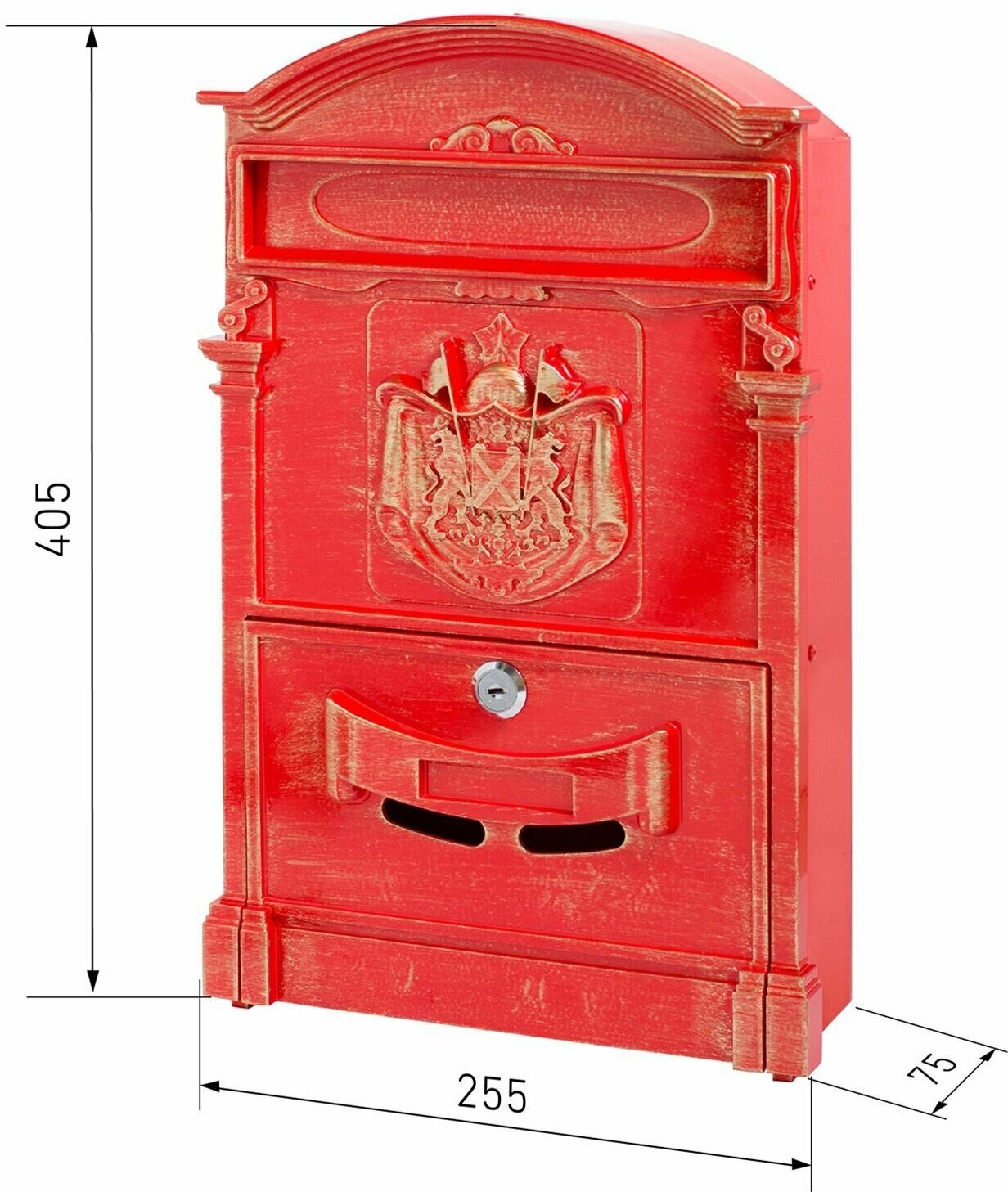 Почтовый ящик с замком металлический аллюр №4010В антик красный информация: