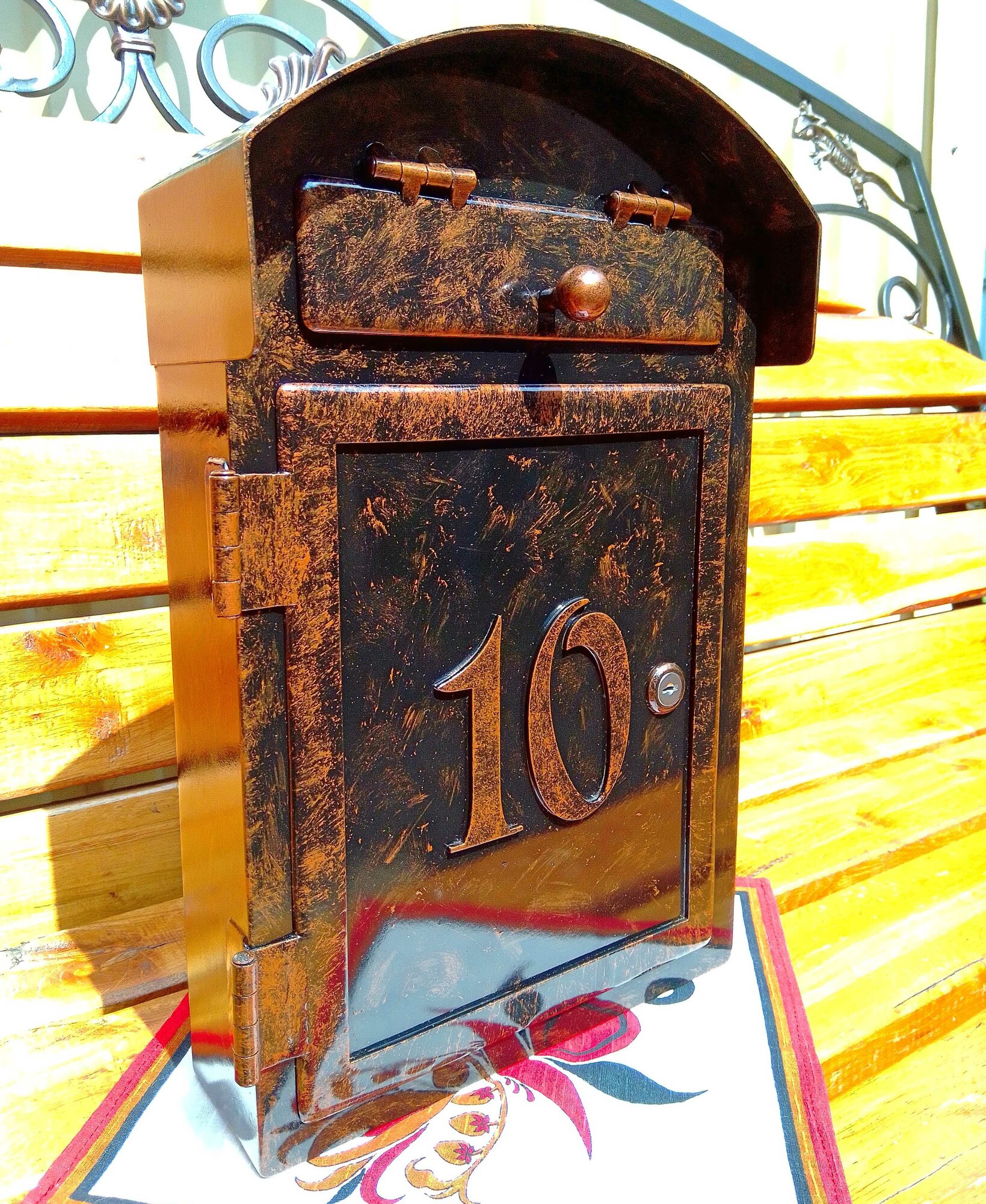 Почтовый ящик с номером дома, врезным замком и 2-мя ключами. Цвет Медный. информация: