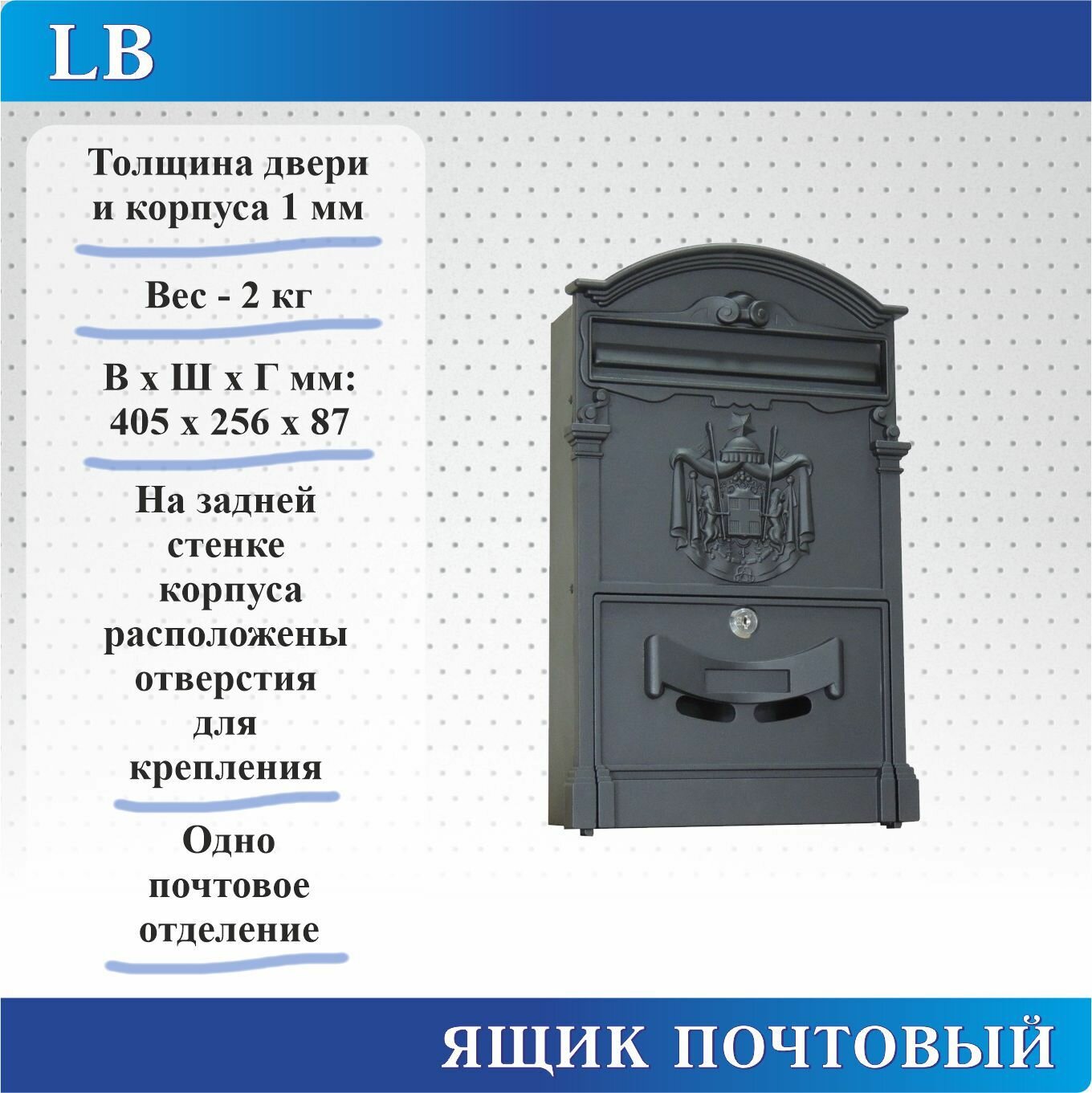 Ящик почтовый LB черный, В. Ш. Г. 405х256х87 информация: