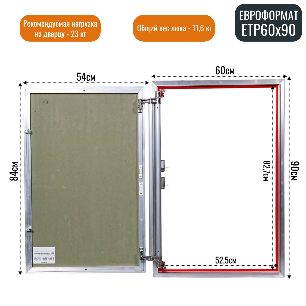 Ревизионный люк Практика Евроформат ЕТР 60-90, алюминий, под плитку, от завода производителя информация: