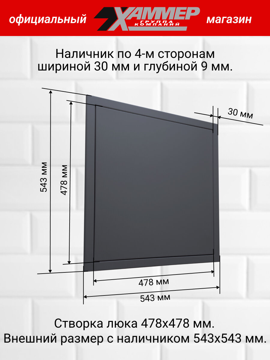 Отзывы на Люк металлический Хаммер 50х50 (ШхВ) см, нажимной, сталь, графит, петли на стороне 50
