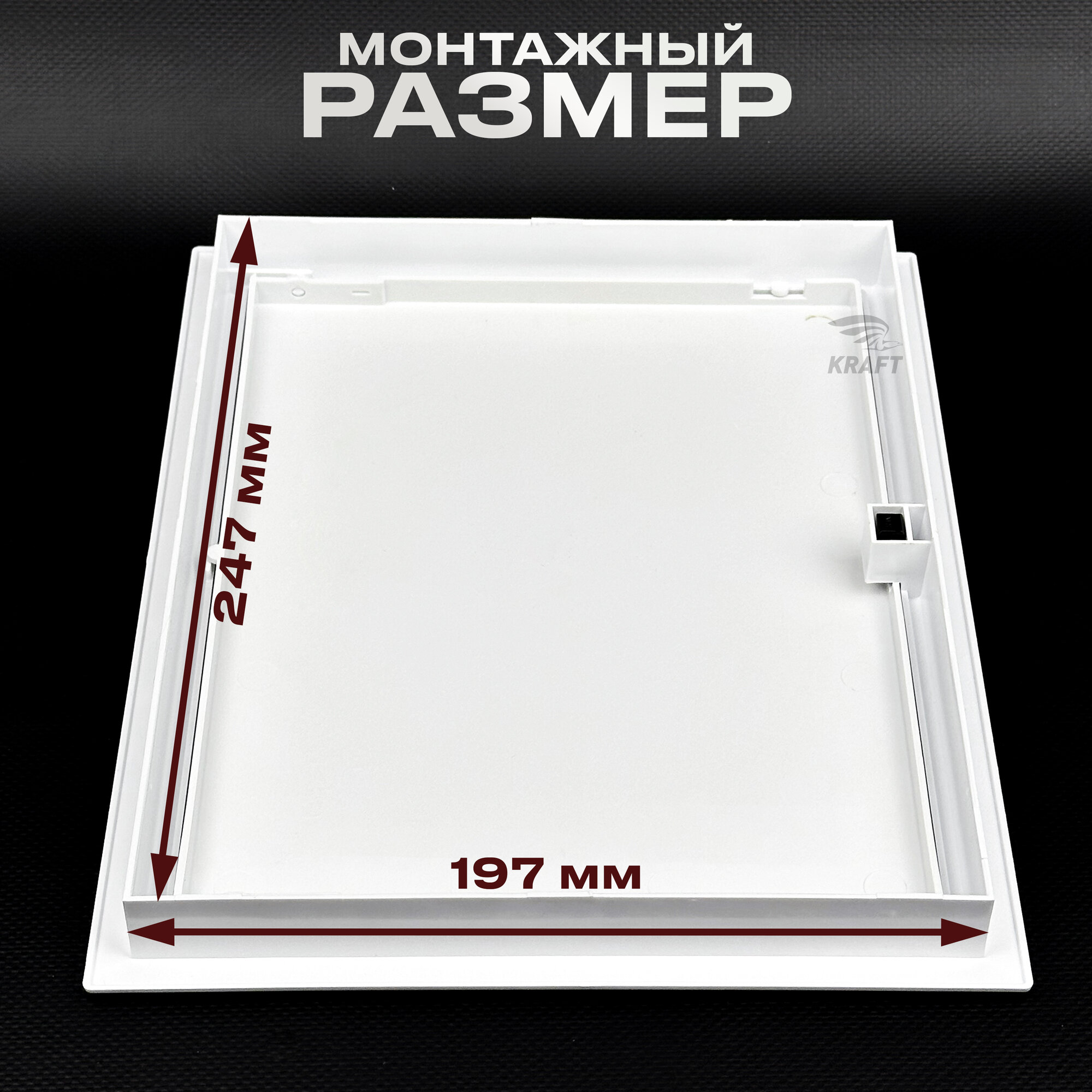 Люк ревизионный сантехнический 200х250 мм с замком защёлкой, присоединительный 197х247 мм, из белого ABS пластика информация: