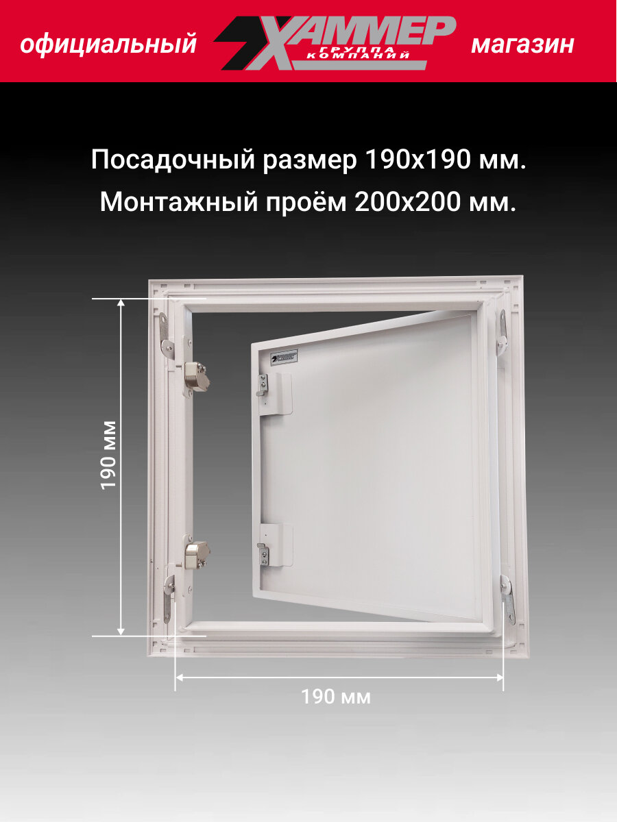 Люк металлический Хаммер 20Х20 (ШхВ) см, нажимной, сталь, белый, петли на стороне 20 информация: