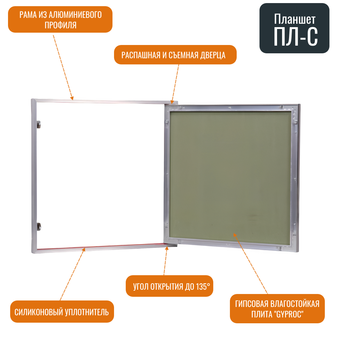 Потайной люк Практика Планшет С 60-40, алюминиевый, под покраску, настенный, потолочный, от завода производителя информация: